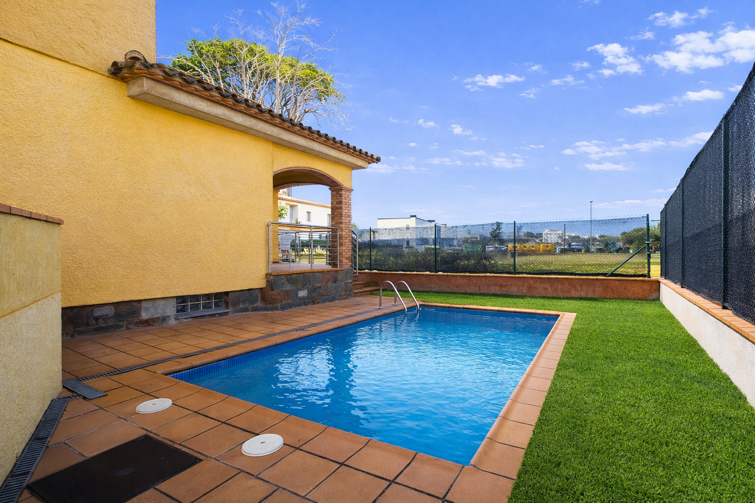 Descubra esta magnífica villa unifamiliar de diseño contemporáneo y acabados de alta gama, ubicada en una zona residencial tranquila de L'Escala, a tan solo 500 metros de la playa de Riells y a 5 minutos a pie del paseo marítimo.